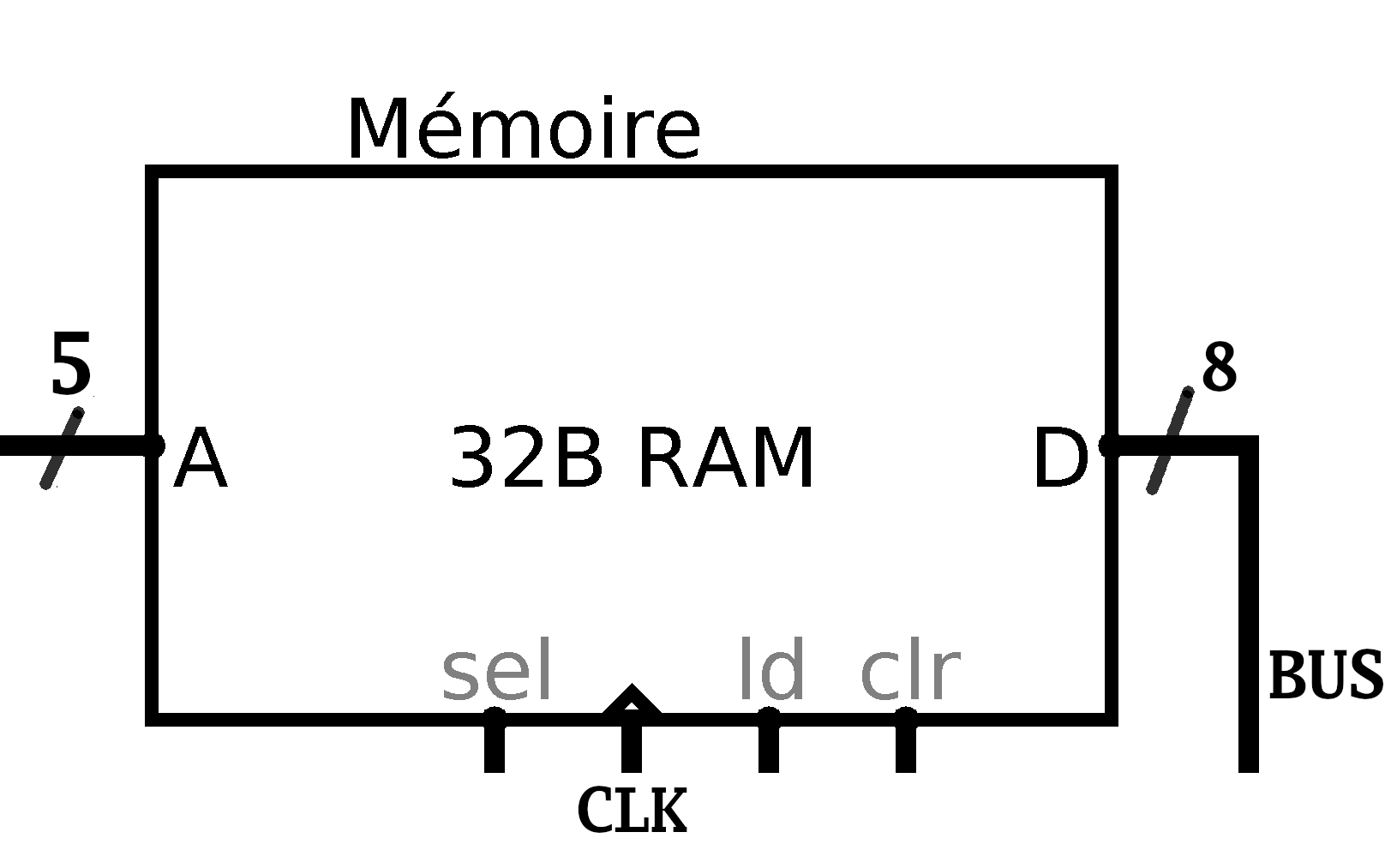 - Des adresses sur 5 bits également – Nous n'aurons donc que $2^5 = 32$ octets en mémoire !