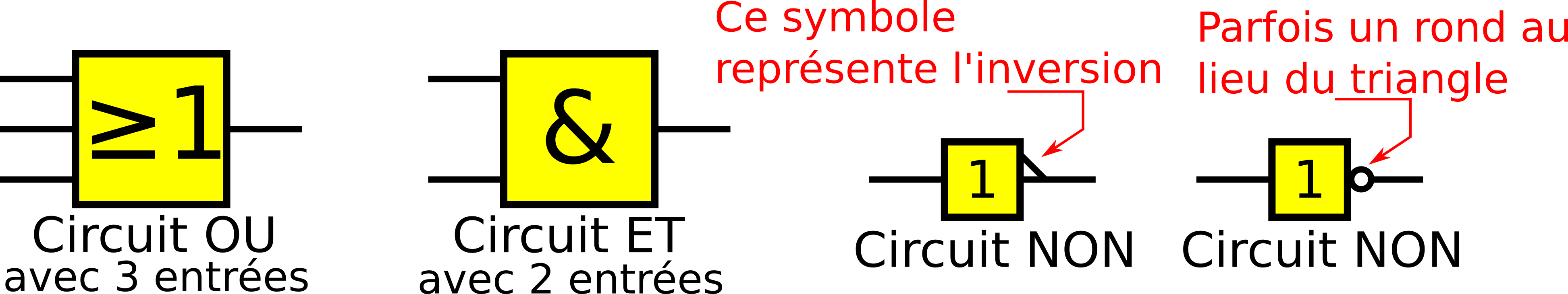 les opérateurs ET, OU et NON permettent de faire tous les calculs nécessaires. Un ordinateur ou un automate fera un grand usage des ces opérateurs. Nous allons donc nous intéresser à leur réalisation concrète : les circuits logiques.
