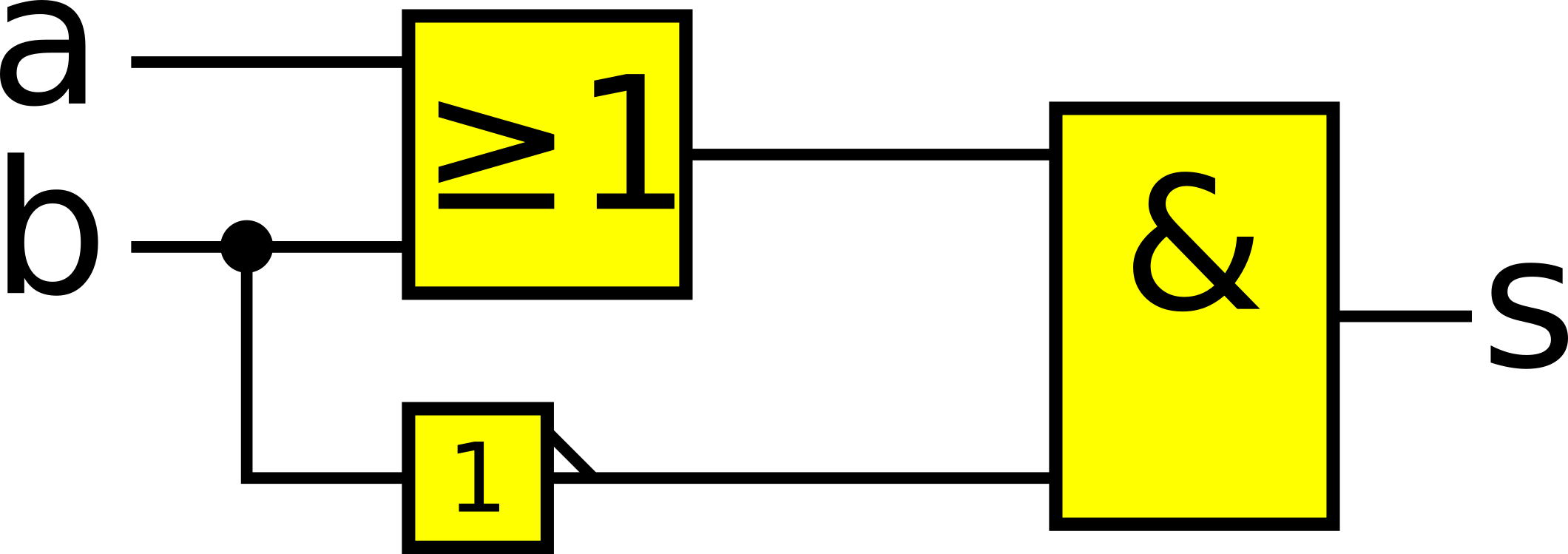 Ce circuit réalise l'équation : s = (a or b) and not b