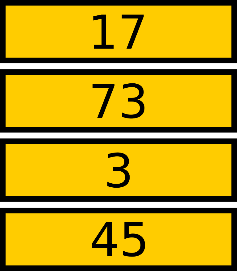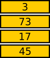 Une pile est une structure de donnée basée sur le principe premier arrivé, dernier sorti. Dans l'exemple ci-contre, 17 est au sommet de la pile.