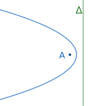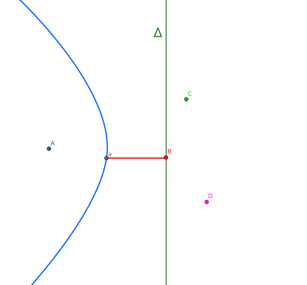 La droite de balayage étant placée. Appelons là $\Delta$. Considérons un point A du nuage. On s'intéresse à la ligne des points à égale distance de A et de $\Delta$.