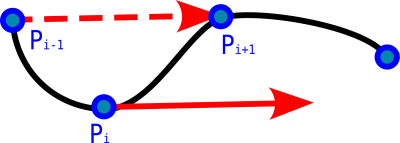 Quand on considère le point $P_i$, on lui attribue un vecteur tangent égal à $\overrightarrow{P_{i-1}P_{i+1}}$.